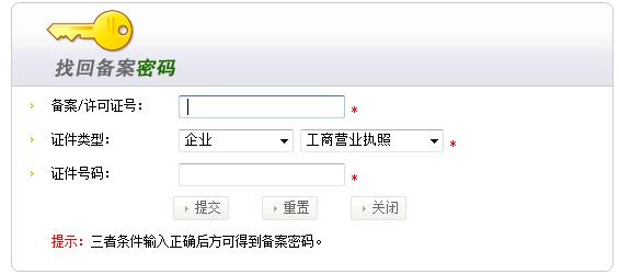 2、點擊右下角,找回備案密碼,選擇你所在地區,這里我舉例的是我們山東省境內的網站備案密碼找回: